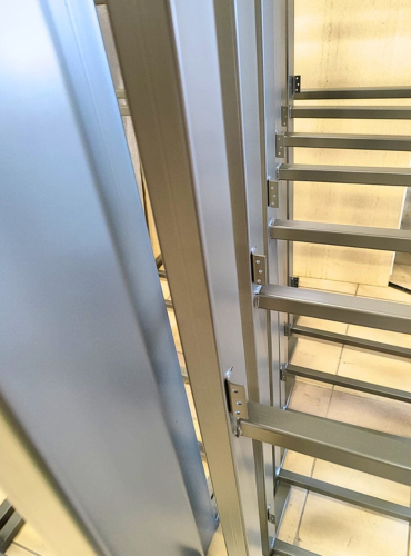 Stabilna rama stalowa przygotowana pod ekspozytory. Całość wykonana z profili stalowych, malowanych farbą proszkową. Precyzyjne spawy i dopasowanie elementów gwarantują trwałość i estetykę charakterystyczną dla realizacji.
