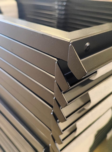 Precyzyjnie wykonane ramy stalowe przygotowane do montażu ekspozytorów i mebli reklamowych.